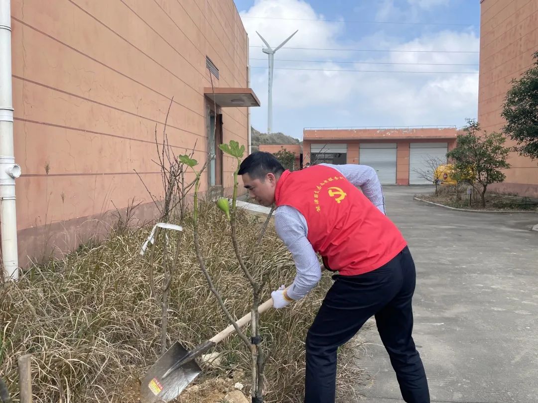 線(xiàn)下,能源公司的黨工團(tuán)志愿者們帶上樹(shù)苗、扛起鋤頭,奔赴平陽(yáng)西灣及蒼南霞關(guān)兩個(gè)風(fēng)電場(chǎng),在暖陽(yáng)下,挖坑、栽樹(shù)、壓土、澆水...... 各個(gè)環(huán)節(jié)銜接有序,配合默契,認(rèn)真地完成每一道工序,一棵棵新苗就穩(wěn)穩(wěn)地在土里扎下了根,為風(fēng)電場(chǎng)的春天又增添了一抹新綠。