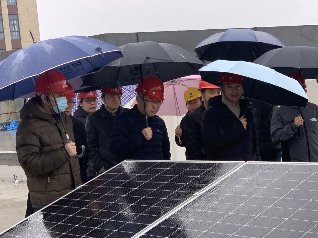 在項目建設現場,南琪查看了屋面光伏板鋪設情況后強調指出,務必堅持以“高標準、嚴要求”對待施工的每個環節,提高項目品質,以“匠心”打造出光伏樣板工程,體系化構建綠色智慧產業園區。