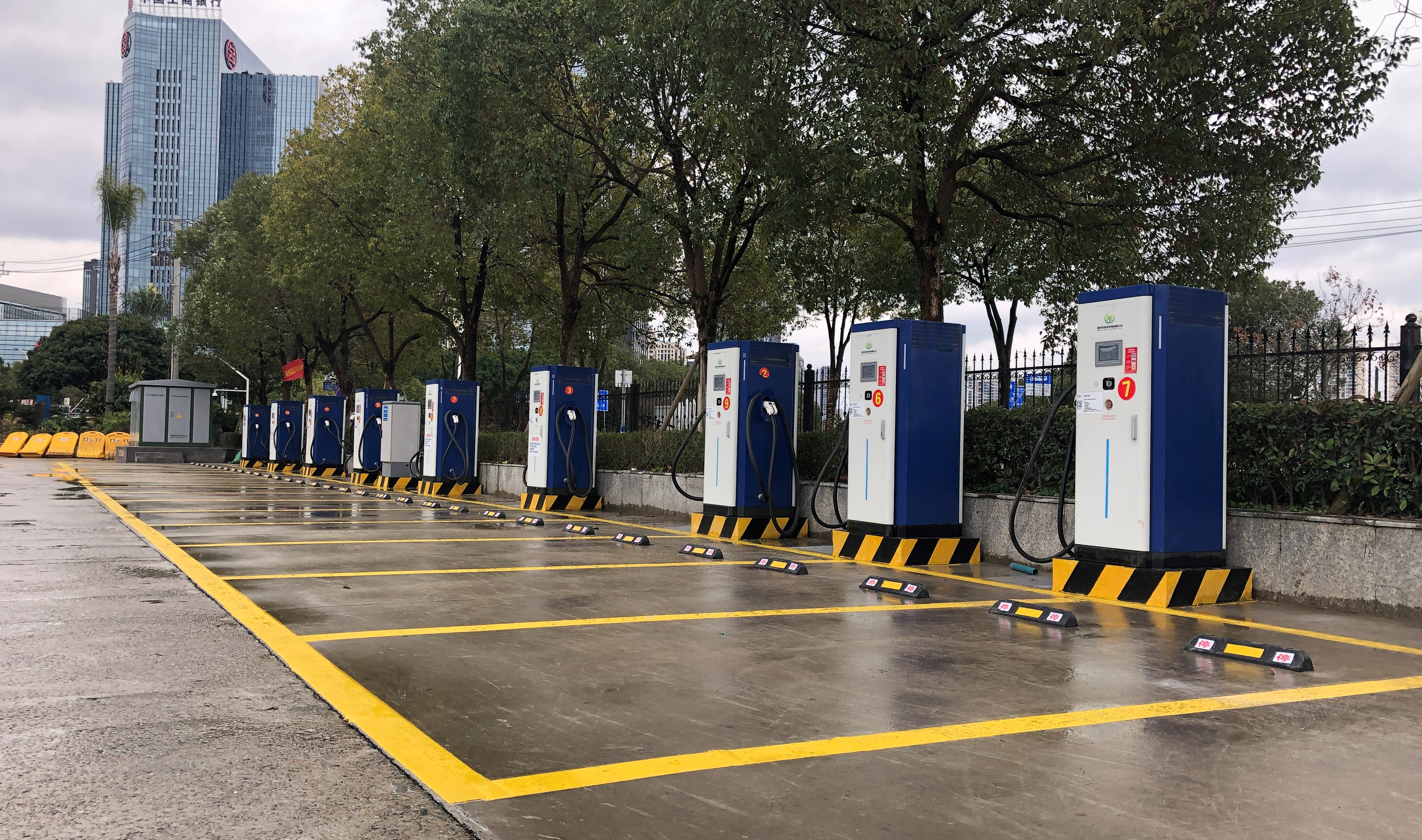 溫州能源汽車充電站(會展中心)項目建設地點位于浙江省溫州市鹿城區會展中心公共停車場內,建設1座公共充電站,站內建設800千伏安箱變1臺;120千瓦1機2槍的一體化充電設施7套,60千瓦1機1槍的一體化充電設施2套,可同時服務停車場內16輛車。建成后,每日可服務64輛網約車(出租車、私家車),場站日充電量1920kWh, 年充電量691200kWh。